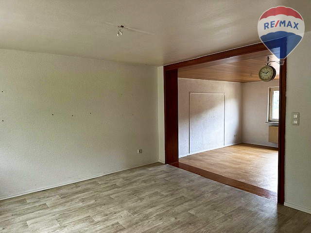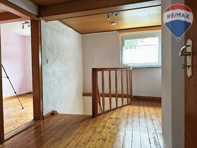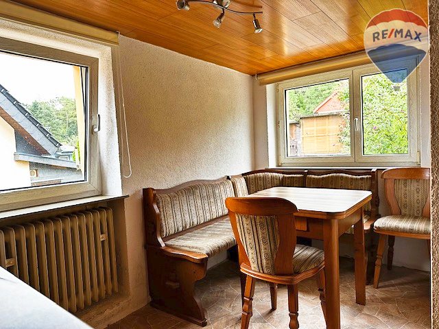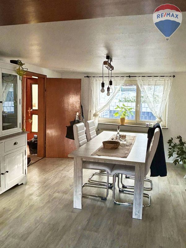 Dieses Einfamilienhaus mit Garage befindet sich auf einem ca. 383 m² großen Grundstück und bietet auf zwei Ebenen insgesamt 5 Zimmer, Küche und Bad mit einer Wohnfläche von ca. 94 m², was eine flexible Nutzung je nach Bedürfnissen der Familie ermöglich. Das Baujahr des Hauses, zu dem eine unterkellerte Garage gehört, ist nicht bekannt.Die Raumaufteilung erlaubt eine Vielzahl an Nutzungsmöglichkeiten und individuellen Gestaltungsideen. Ein Vorgarten sowie ein ca. 16 m² große, teilweise überdachte Terrasse, empfängt Sie und Ihre Besucher. Der Eingang des Hauses ist überdacht. Vom Flur, in dem sich auch die Treppe in das Obergeschoss befindet und Platz für eine kleine Garderobe bietet, geht es in das Wohn-/Esszimmer sowie die Küche. Das Wohn-/Esszimmer besteht aus ursprünglich zwei Zimmern und verfügt über ca. 27 m² Wohnfläche. In den hinteren Bereich geht man eine Stufe nach unten. Die Küche, die dir Form eines "L"'s hat ist mit einer älteren Einbauküche inkl. Sitzecke ausgestattet.