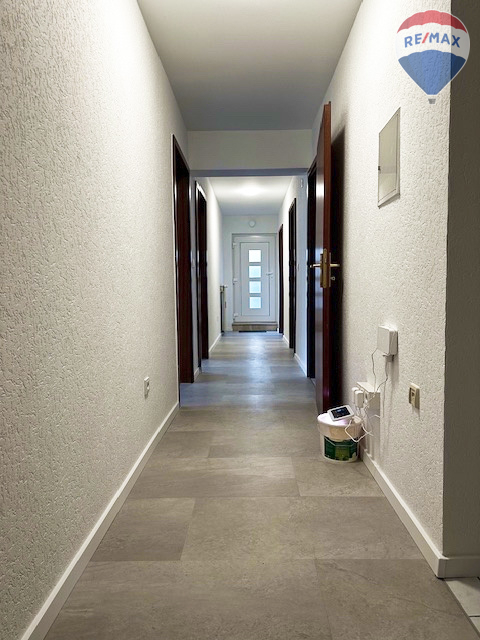 Wohnzimmer und Flur verfügen über neue Vinylböden, während die Schlafzimmer, Küche und Bad gefliest sind. Geheizt wird über eine Wärmepumpe (Baujahr 2023), die Rollläden der 2-fach verglasten Fenster sind elektrisch und eine Alarmanlage kann übernommen werden.