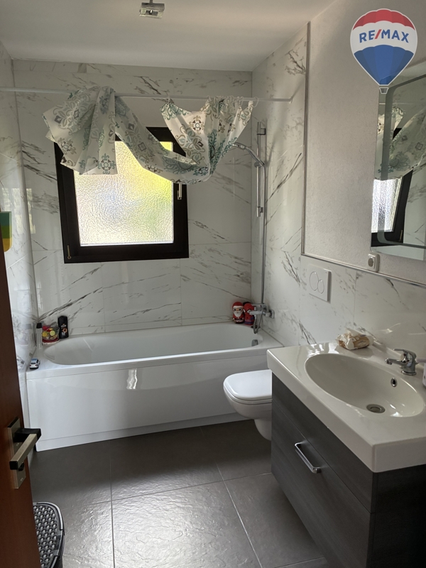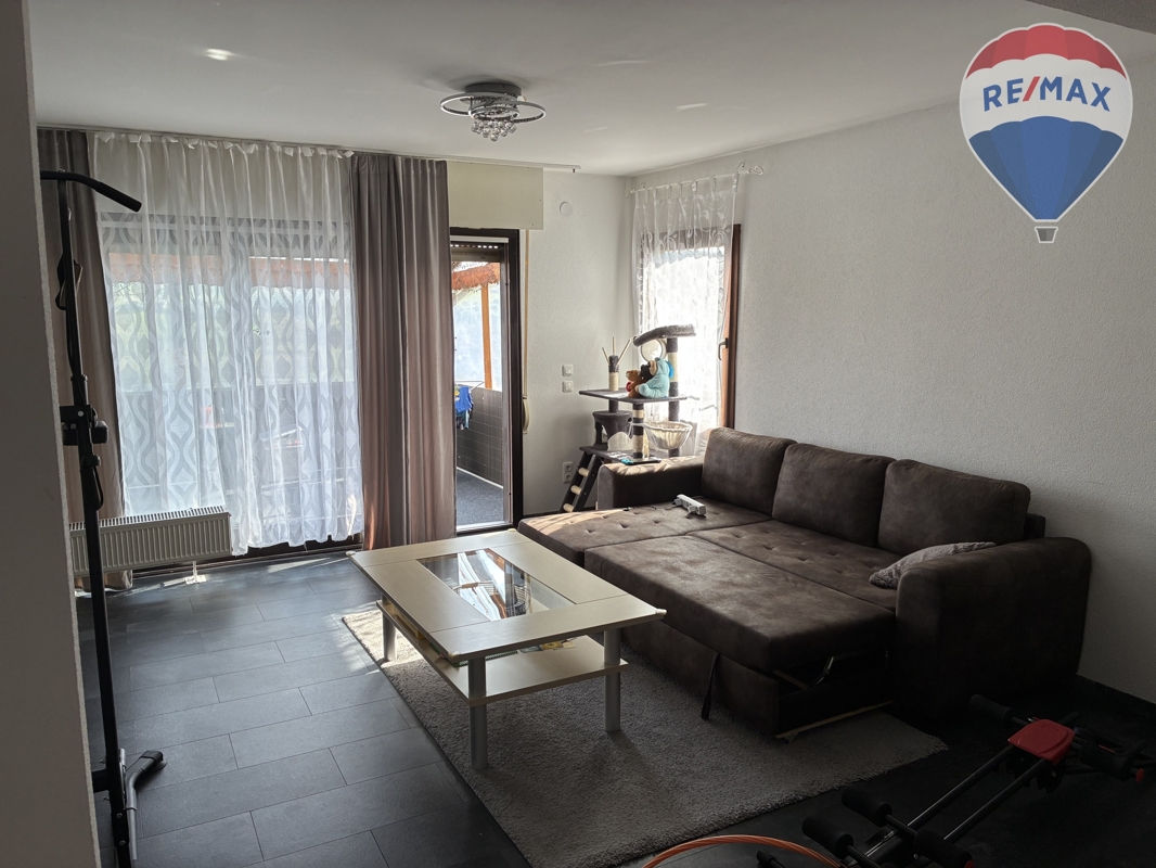 Im Erdgeschoss erwartet Sie ein großzügiger, überdachter Balkon am Wohnzimmer, der mit Südausrichtung und einer praktischen Markise ausgestattet ist und einen herrlichen Blick bietet. Hier können Sie entspannte Sonnenstunden in vollen Zügen genießen. Die Räumlichkeiten des Erdgeschosses wurden stilvoll renoviert und mit hochwertigen Böden aus Vinyl, Fliesen und Parkett veredelt.