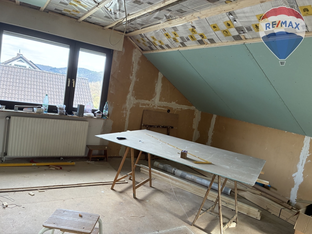 Das Dachgeschoss ist bereits zum Ausbau vorbereitet, so dass Sie diese Räumlichkeiten ganz nach Ihren Vorstellungen mit Wand- und Bodenbelägen fertig stellen können. Die Dachfenster wurden bereits 2022 erneuert und auch hier befindet sich eine Loggia, die Raum zur Erholung bietet. Die Öl-Zentralheizung der Marke Wolf, installiert im Jahr 1998, sorgt für eine behagliche Wärme in den kälteren Monaten, und wird von einem Kaminofen im Wohnzimmer unterstützt. Gemäß Auskunft des Schornsteinfegers muss die Öl-Heizung nicht erneuert werden, da es sich um eine Niedertemperatur-Heizung handelt. Die Fenster sind 2-fach verglast und aus Holz. Das Dach ist solide mit Pfannen gedeckt und gedämmt. Die Elektroinstallation ist im Erdgeschoss erneuert worden.