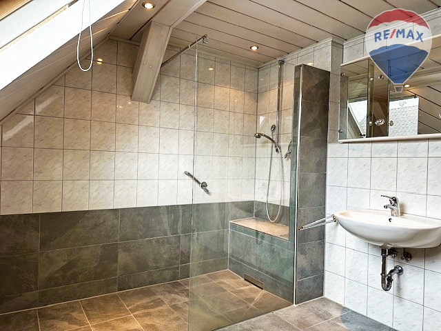 Im Obergeschoss finden Sie zwei weitere großzügige Schlafzimmer, die eine private Ruheoase darstellen. Das moderne Badezimmer, das erst kürzlich im Jahr 2021 umfangreich renoviert wurde, besticht durch seine ebenerdige Dusche sowie den Waschmaschinenanschluss - ideal, um den Alltag komfortabel zu gestalten.
