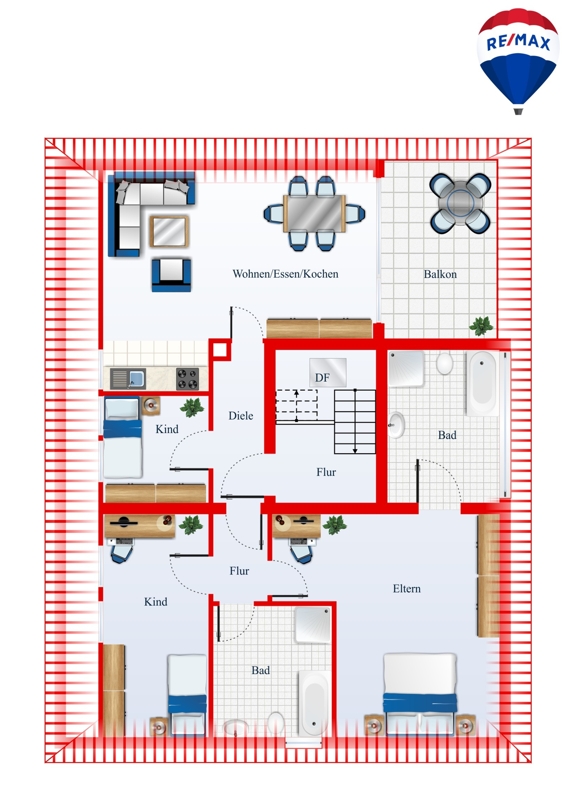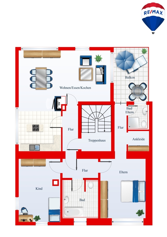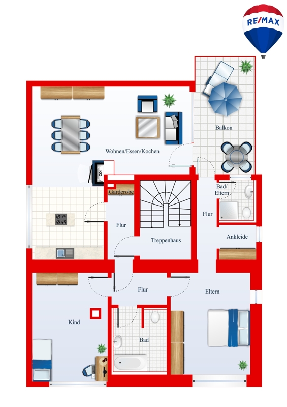 Im Kellergeschoss des 3FH befinden sich zum einen 2 Garagen, Kellerräume sowie der Heizungsraum. Ein zentrales Treppenhaus verbindet dabei die einzelnen Geschosse vom Erd- bis zum Dachgeschoss miteinander.