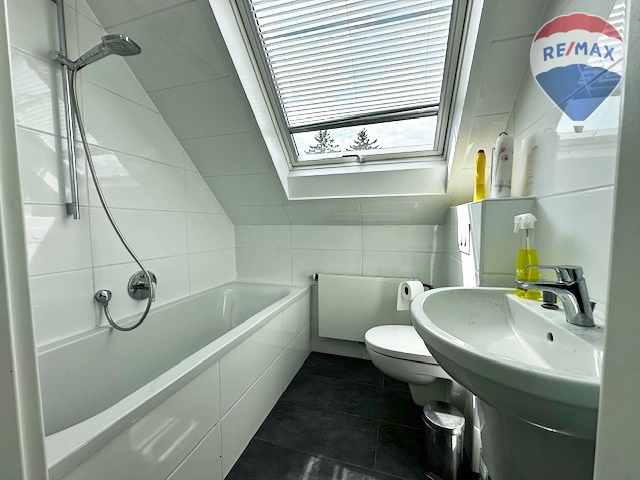 Die Badezimmer sind funktional und modern gestaltet und verfügen alle über Tageslicht und Waschmaschinenanschluss: Das Bad im Erdgeschoss wurde 2017/18 erneuert und bietet eine komfortable Dusche, während das Badezimmer im ersten Obergeschoss mit einer Wanne ausgestattet ist. Das top renovierte Bad im Dachgeschoss kombiniert Wanne und Dusche, ideal für erholsame Stunden.